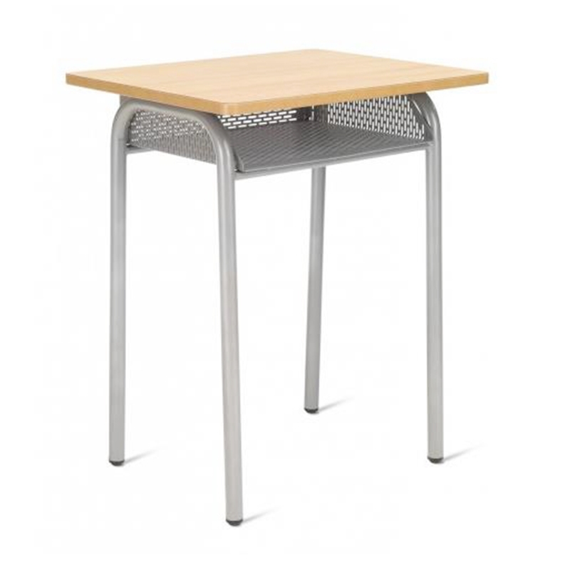 Sencillo pupitre escolar con cajón inferior fabricado en chapa perforada. para libros.