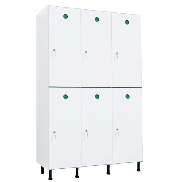 Esta taquilla dispone de compartimentos individuales con puertas ventiladas,